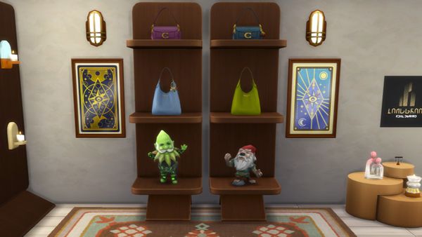 • I placed a few handbags in one of my sims' stores. Pricey items, so I hope they sell like hotcakes! Buy and resell, no crafting. 😉