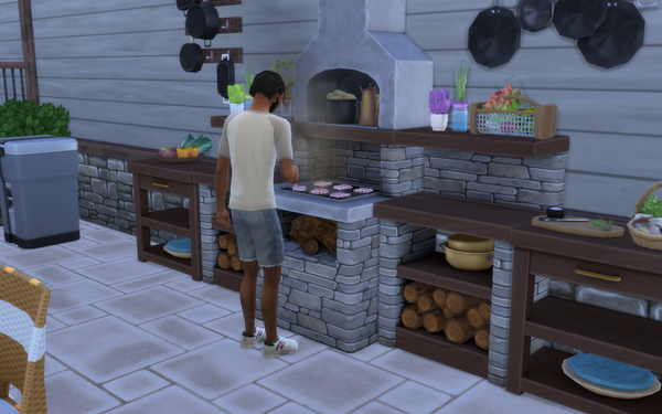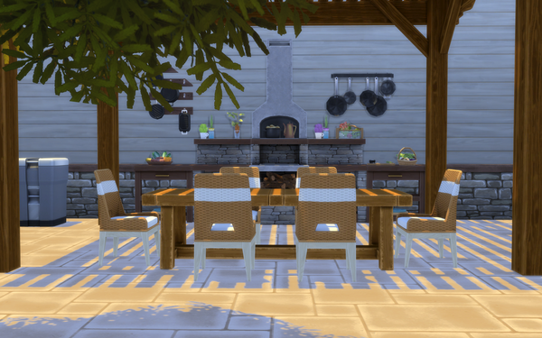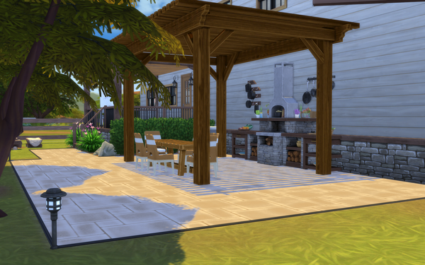 Their remodelled living room and outdoors dining patio are both lovely! 🙂It looks very nice how you have used the kit items. The warm natural colours of the living room is very nice. It looks a lovely place to sit and chat, with the new fireplace keeping the room warm. The family photos are a special touch on the walls 💗The patio is lovely for them to use the new grill and enjoy dining outdoors as a family as well as with friends. It is great that you have added 2 smaller table with the chairs also. The candles are pretty on the tables.