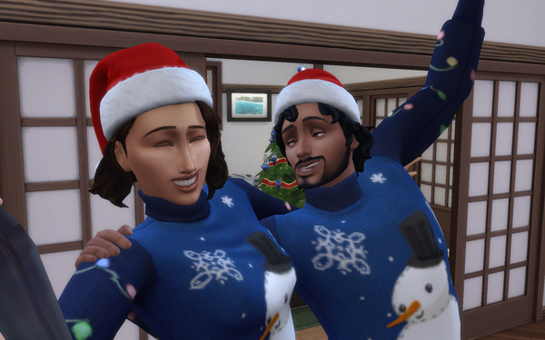 It is a lovely selfie of Sonia and Lorenzo wearing their Winterfest outfits ❤️It is sweet that they are both wearing matching jumpers and hats, as a newly couple 💗Festive Storm looks so cute! 🙂
