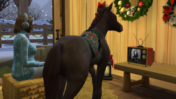 It is a sweet photo of them enjoying watching a holiday movie❤️ The look on the horse’s face whilst she watches the movie is cute 💗