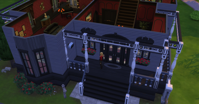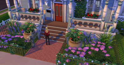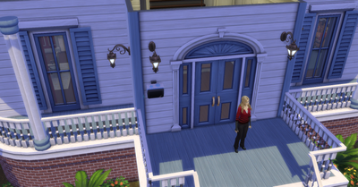 I had to think "outside of the box" since I don't own the Seasons expansion pack. So, Laura ended up installing the Holiday Wall Speaker outside of her neighbors' homes and then changed the station to Winter Holiday. 🤣 (Laura and her two housemates currently live in Parkshore).