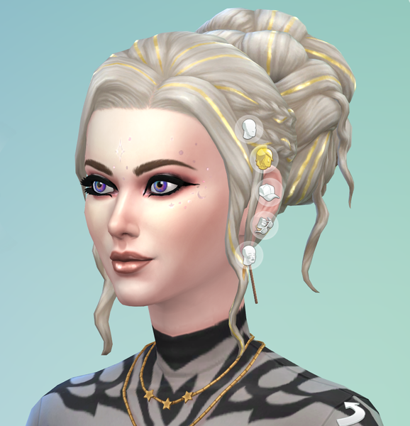 I am in love with this EbN female updo (with a plain and with coloured ribbons/highlights?). On my Sim the ribbons/highlights look like reflective gold... I love the purple/iridescent eyes I gave it to my spellcaster.Cool thing you can name the Apothecary Storage Cabinets, YAY for us crazy organized individuals.edit: