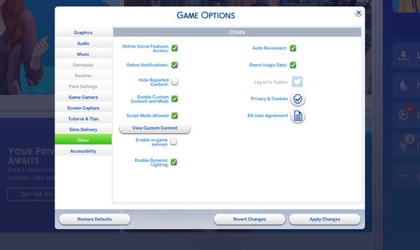 Marketplace has replaced Sims Delivery Express and it's no longer possible to disable Online Social Features Access (Turning off Gallery, Events and Shopping Cart notifications).