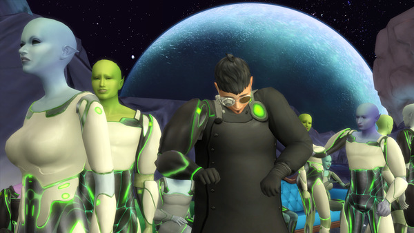 I like to capture screenshots that are full of townies that start from random, but have now become my original characters. All of the aliens here already have proper human-disguised looks that I gave makeovers to before. I want to meet them in human world soon!