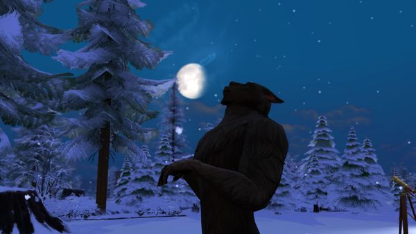 It is a great photo of the werewolf looking up at the moon on a Wintery night MDianaSims 🙂