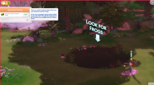Ashamed to admit, I skimmed thru the objective so fast I failed to read 'Pond' I found 3 frog logs inside and was wondering why it wasn't completing. Then the game literally gave me a sign 🙈😳