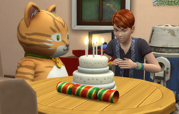 When the task to buy a camera came up, I framed that as a birthday present (I bought the 650 simoleon one) and celebrated a "fake" birthday by removing the candles manually without blowing them out. Of course Millicent was a guest (and would later sit at the table, where Armi is standing now).