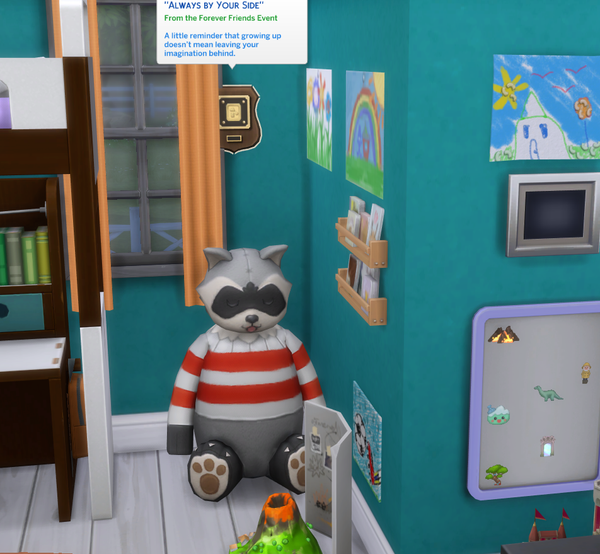 I think child's new "play retend" will make child gameplay more fun. And your child's bedroom is lively too! I also enjoy playing child sim in this event because I rarely play household that have child. It's so refreshing!