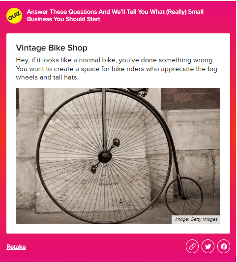 To enter take the following quiz to reveal what small business you should start and post your result.