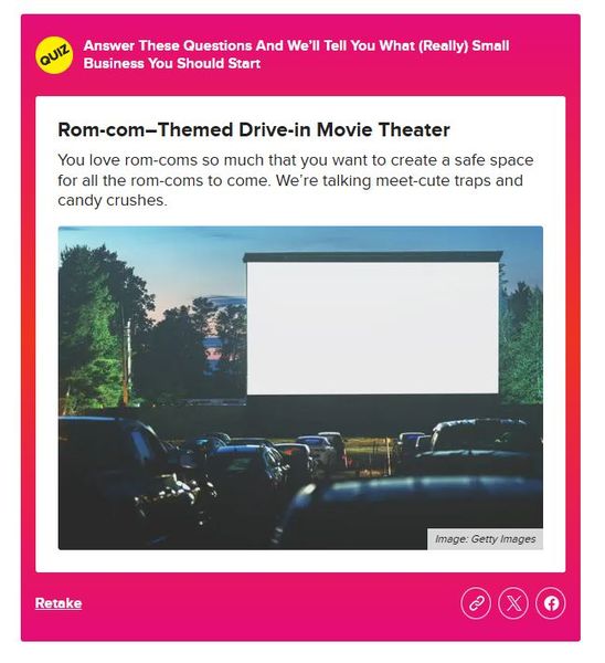 To enter take the following quiz to reveal what small business you should start and post your result.