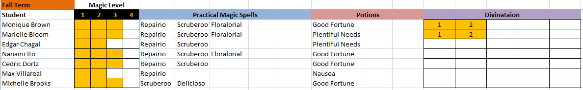 I will also try to get a feel for their course pacing. They are supposed to learn 6 spells and 3 potions over the Fall, Winter, and Spring Seasons and reach the Neophyte level of magic by the end of the year. If they fail to do that they will have to do it over the summer. I doubt that will happen and I will use the summer to leave Hogwarts and rotate among other households.