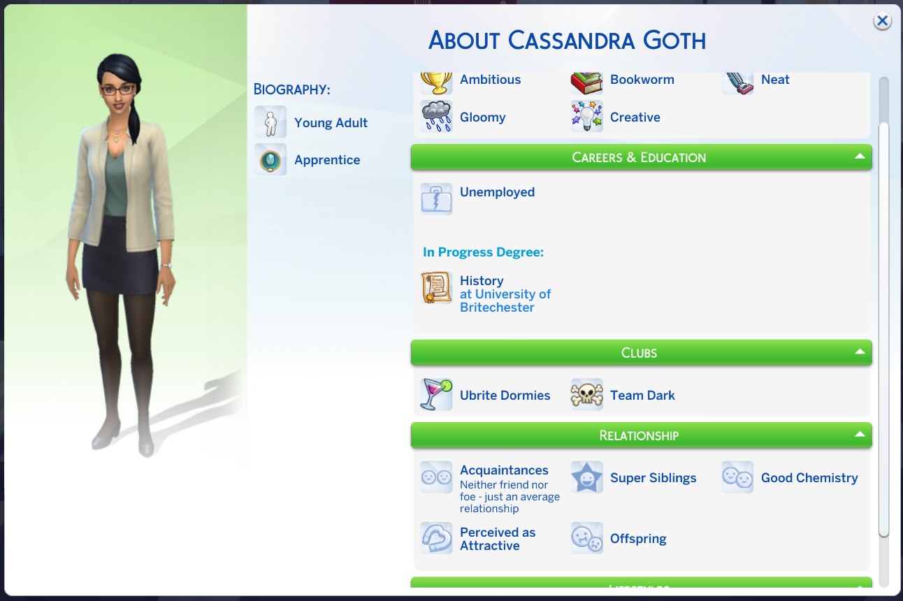 I added two mods for chemistry and attractiveness. It looks good on the UI, but I don't know how it will effect game play.