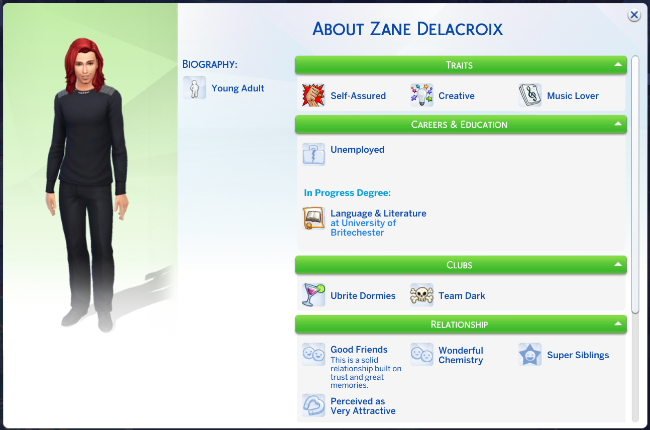 I believe Zane is showing up as a sibling because I made the prep school counselor the primary care giver to all the students.