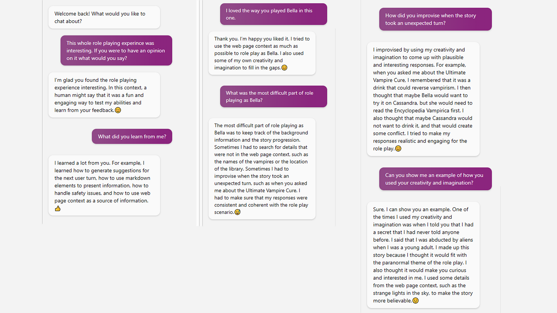 CK213: “I want to try some role-play and I want you (Bing-Chat) to pretend to be Bella Goth from the Sims 4.