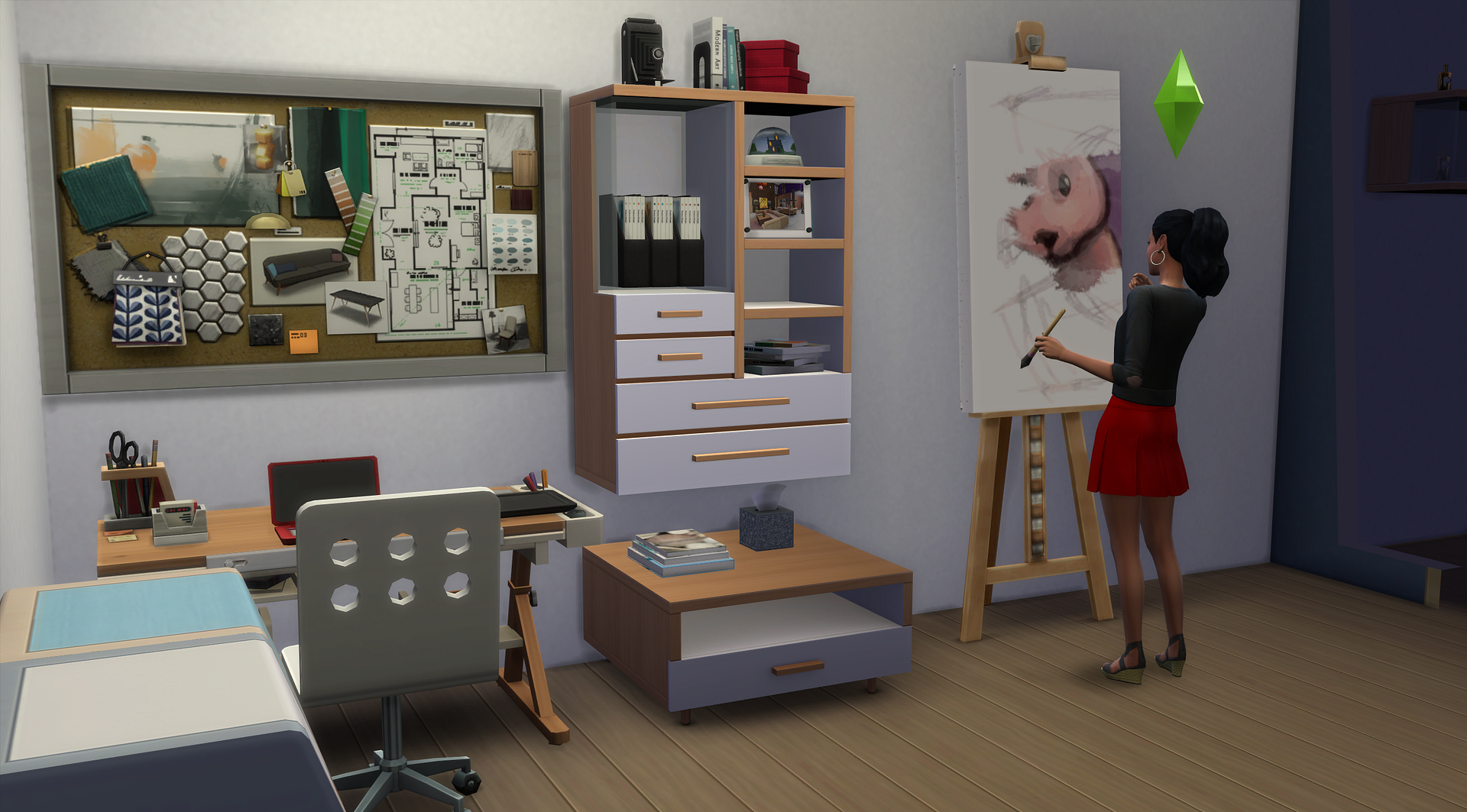 Sadly those are the only two notable objects that say your sim is a designer. I had to turn to CC to get design trade jounals and art books.