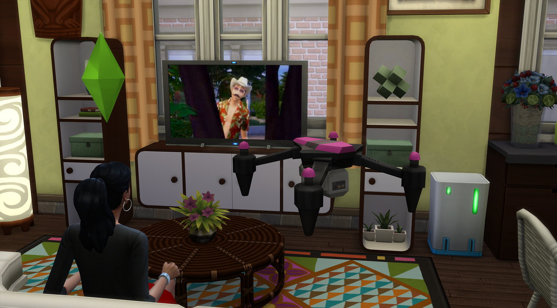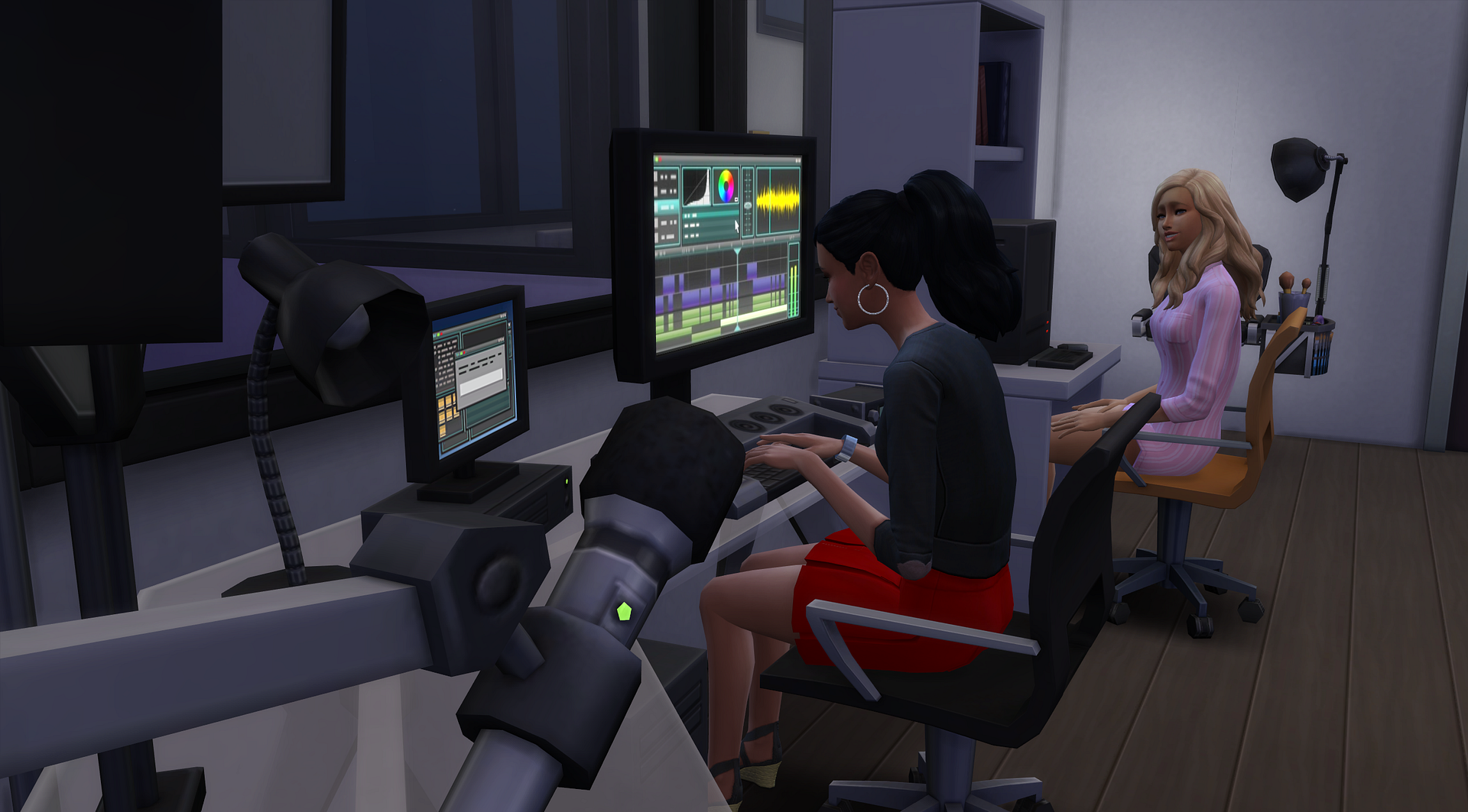 Since my sim's life as a designer is just limited to her asking questions, I am fleshing out my game play using other packs. She is using social media to promote her business. Sher records video of her gigs as well as live stream them.