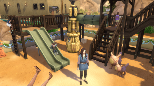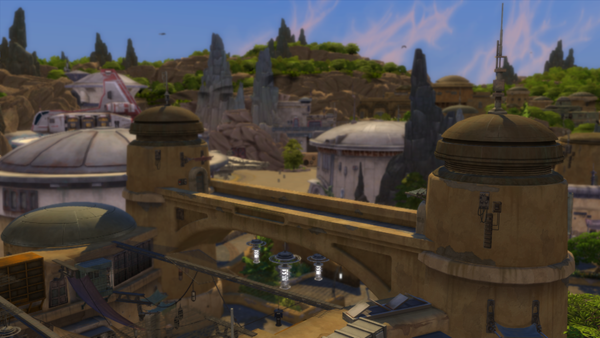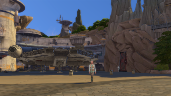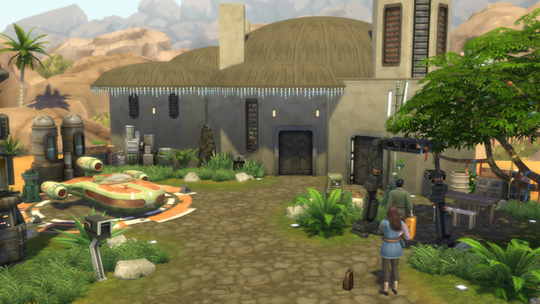 My sim rolled a bucktlist goal to spend a day in oasis springs. So the only logical consequence is to take a vacation at the batuu neighborhood in oasis springs ;)
