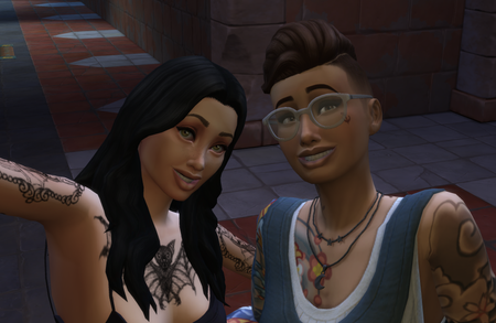 Let's see your sim's selfies, 1,2,3, & 4! This is Juliet Greenhill, and her spouse, the pants, Terra Thrasher. Happy Halloween, little monsters! 🍌