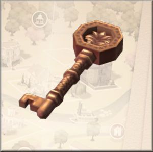 Inside tucked away within the book cover there is a copper key. The key’s head has the crest of the Darong family on it.