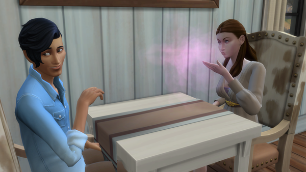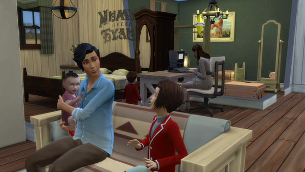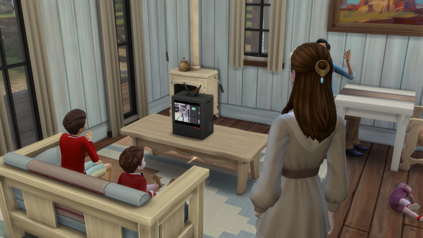 Olivia and Daisy first met up with the Envoy and asked the question. The answer was Romance. So Olivia's first task was to flirt with someone. Why she can flirt with Dan her Husband of course. Then she went and Watched Romance on TV. Davin and Conner wanted to watch it too to help. Then went on the computer to look at stuff on the Capps. That ends this first set of pics.