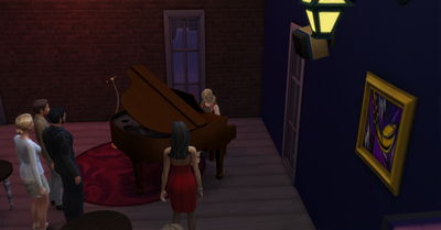 Rachel is only level 1 in the piano skill. She's going to need a LOT more practice to entertain important guests!