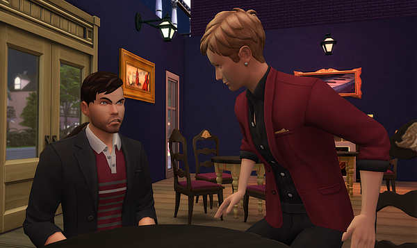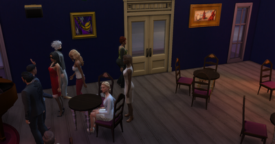Lol, I demolished the Blue Velvet nightclub long long ago. I'd replaced it with a cafe. So I added bar stools and a stereo to meet the nightclub requirements then a fireplace and piano to complete the event tasks. I also changed the name back to Blue Velvet. Just in case. 😃