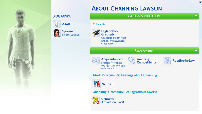 - Familial relationships will be displayed over marriage relationships. Example in my game: