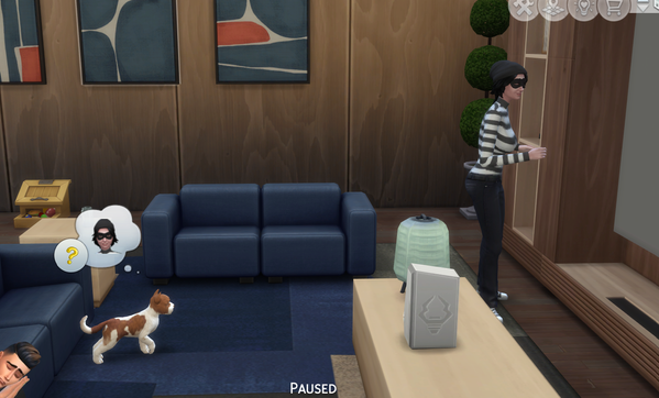 I did another test with another dog who did not have the aggressive trait. The burglar put several items in their bag. Eventually, Bruno went to the room with the burglar, fought and scared them off. Stolen items retrieved.