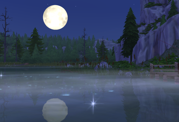 You're right. I always have my normal sims spend some time in the bar there, waiting for the sun to set. They are beautiful pictures! @Gagea25 🙂 The trees look very nice with the sunset and night time skies. The reflection of the moon and stars in the water is very pretty.