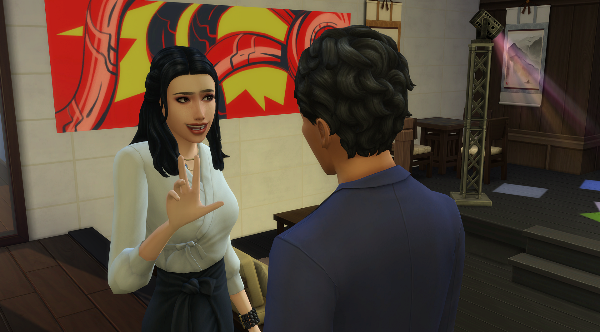 I tried to have my sim couple, Joel and Rain, interact and found it to be something best avoided.