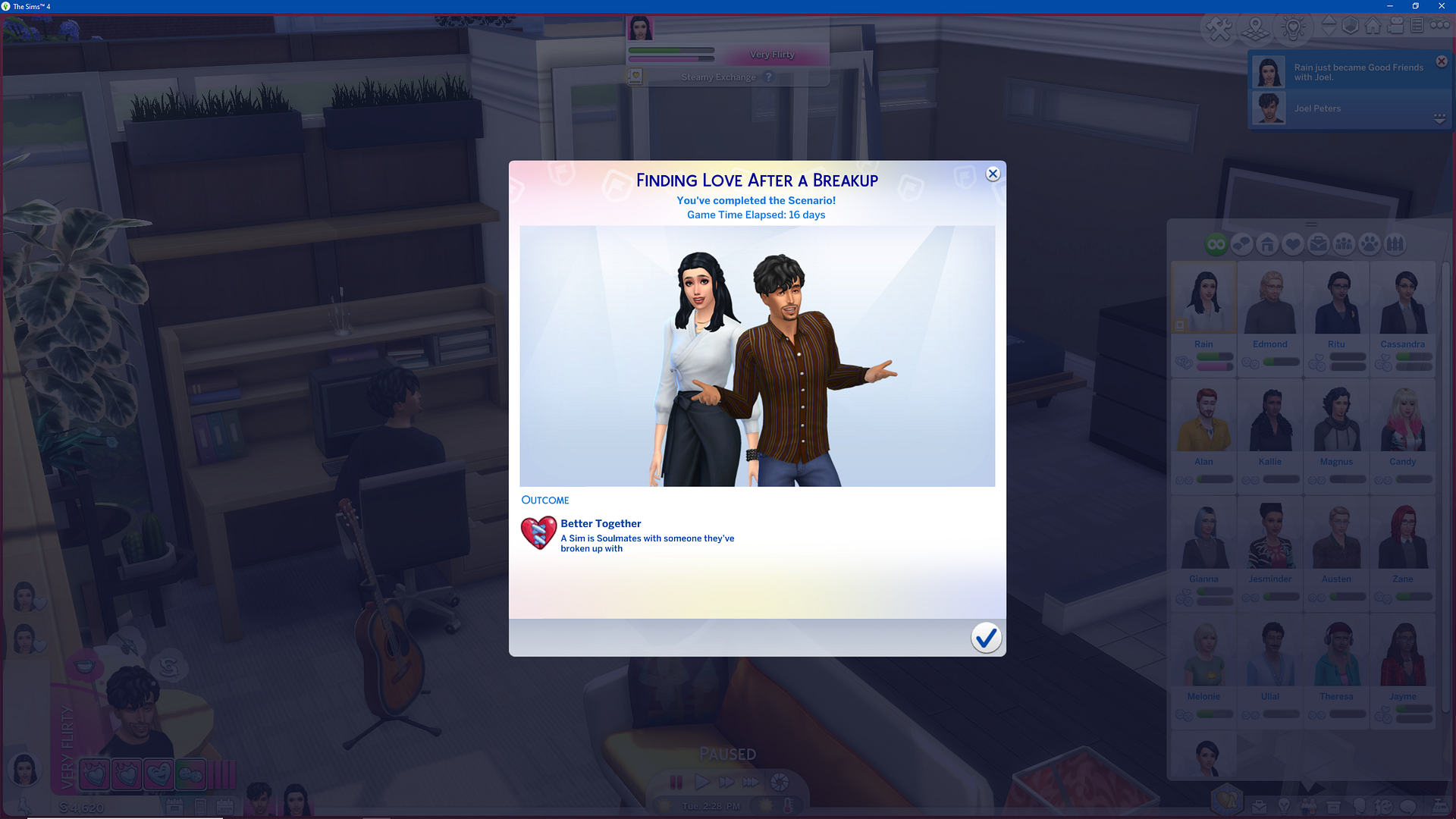 Now that our broken up sims can be civil to each other, I want to give them the best chance to reconcile.