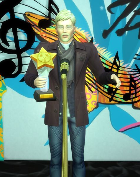 Wow. I am so very sorry to hear of your continuing issue. I sent my Sim to an off-Sunday (in my game, I've chosen to focus on the bigger prizes in the Music World.) The first Sunday of the season is the big prize. Spring-- Song of the Year; Summer-- Artist of the Year (as in new talent, or current talent); Fall --Record of the Year and lastly, but never least; Winter-- Album of the Year. My most recent past iteration of this family was the first time (after advice from some very kind players) that Erik's music was ever acknowledged. Seems lyrics don't count. Just have your Sim write music, license it and you might get nominated. I got overzealous, however, and he won over 50 Best Song awards, before I decided to start this next iteration of him. Sorry he was hoggish about it. I had played him for years, so I just went way overboard. It was just so much fun to have him win and show up to receive it.