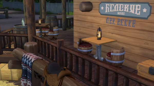 The barrel chairs look great in your tavern/inn! ๐They suit the type of build very well! The outdoors sitting and drinking porch is very nice.