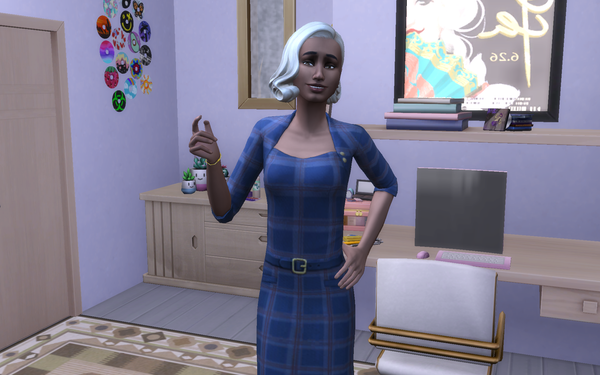 Here is Dominic Salinas, wearing the jacket and pants from the new kit.And his wife, Julie. Hairstyle from the new pack, it has so many beautiful hairstyles! I love that the skirt could easily combo with the blouse or blazer
