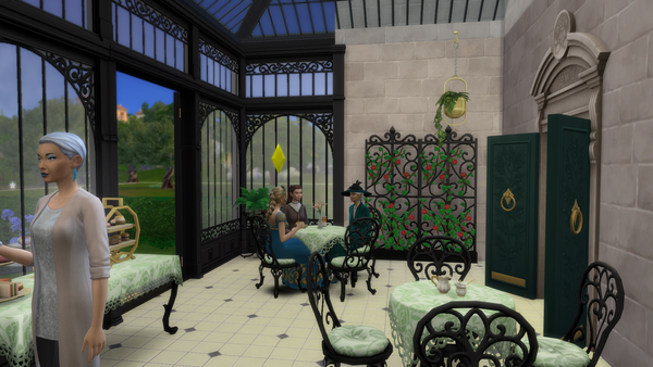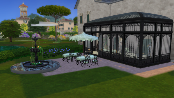 The tea room that you have designed is very lovely ❤️It looks very nice the way you have used the items from the kit.The glass window walls are pretty. It is lovely that there are both indoors and outside dining areas.