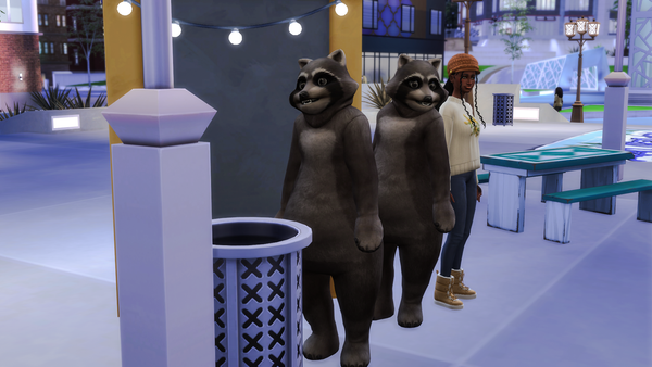I'll stick to birdwatching with Dork, maybe we even spot three raccoons in trench coat if we are really attentive 🦝It does give a surprise when suddenly raccoons appear when visiting areas in the City! It is great photo of them! 🙂 The sim at the back of them looks a bit puzzled.