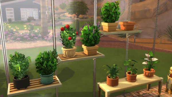 The greenhouse area is lovely! ❤️Although you may not have planned to have taken the photo, it is very nice. It looks lovely the way the plants are on the tiered shelving and there are views of outdoors through the glass window walls. The outdoors flowers are pretty also.