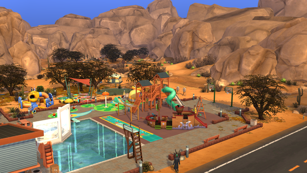 The desert park looks great! 🙂Very nice design and layout! There are lots of fun and enjoyable activities for sims to do there and have fun playing on the equipment. The pool is very nice and pretty water fountains.