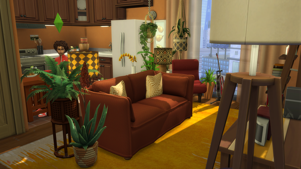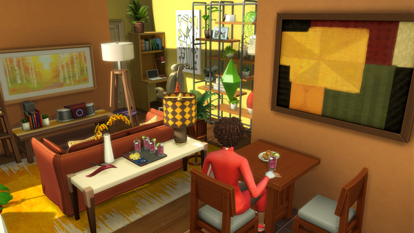 I used that big new African painting for the color story in my girl's new apartment. FYI the trees painting is the TV.