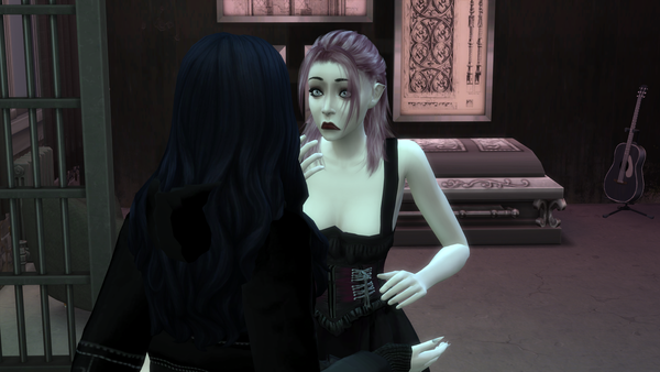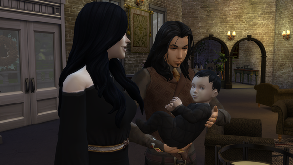 I almost deleted this save when I found out about this. These two hit it off from the moment they met in my game. I left them alone to play another household. Morana had a 30% chance of pregnancy and it was way too high, should have been at 4%. I almost deleted this save because this is not the storyline I had set up for either one of them. Darwin is the father and evil brother of Morgyn Embers and his son's name is Kingston. He's a vampire and looks just like his mother. I think I want to experiment with this couple and see how many vampire and witches they can produce..3 or 4 more kids on the way. They're in love so I'm happy for them but I need their story to stay on the dark side.
