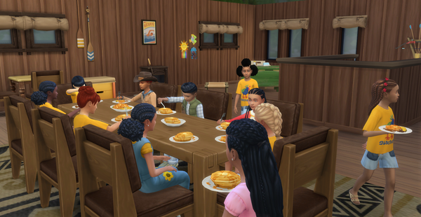 The cabin for the campers is lovely! 🙂It is great that you have made it two levels. The colours of the beds are very nice and great layout and design of each level. It is a lovely photo of the camper kids enjoying eating their pancakes breakfast ❤️It is a delicious way to start the day.
