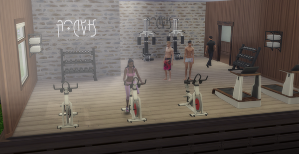 The exercise room was moved to the left side and now Sims have a glass window wall which allows them to view the waterfront while they work out.