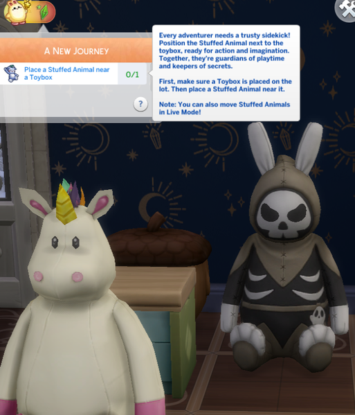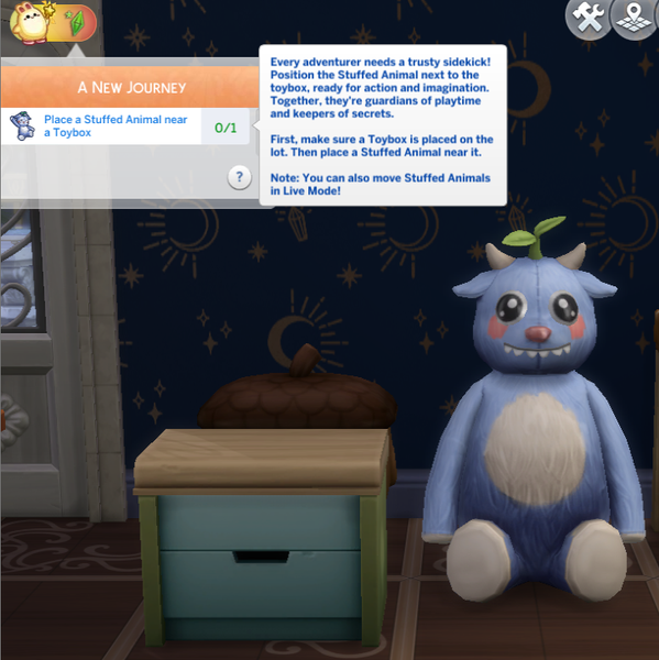 I just started and it's already a trainwreck. Some of the quest steps are to buy items for kids. The game doesn't account for you having those items already, so you have to buy them again. And also, you have to make sure there's enough space to place one of those giant plushies around it, because some of the quests are literally just "move this item next to another item." Then there are other quest steps, like "take a nap," "play with toys," and "watch TV." You interact with the toy once during the first quest, and the rest of the time you just do things while the toy sits in the background, awkwardly separated because its item footprint is so huge that you kind of have to. They want to sell this image of you bonding with a toy, but you interact with it all of twice during both quests.