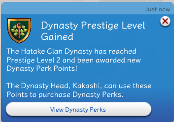 I've chosen Respected Head Lvl 2, Gracious Host Lvl 2, and Discreet. However, I removed Piano as one of the dynasty skills since I didn't want Kakashi to start autonomously playing on one.Meanwhile, Yusei's now at 23% of Prestige Level 2; he has a lot of catching up to do.