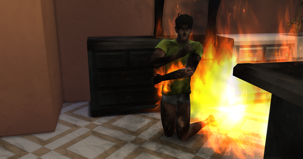 His father and siblings came to see what's happeningThe siblings run to safety, but Tybalt stayed to watch Virgilio burnNo helping hand availableIt's too late now anywayHis siblings are crying on the yard, but Tybalt keeps on his displeased face
