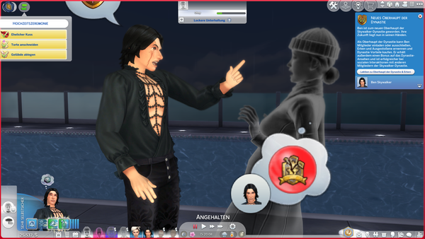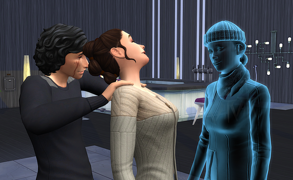 I turned my Skywalker family into a dynasty with the pictured ghost (Leia) as the head and the sim to the left (Ben) as the heir. Right after entering live mode did the game inform me that both Leia's spouse and Ben had overtaken her in rank and could overthrow her.