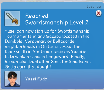 It is great that Yusei has now reached level 2 swordmanship skill level, and Laura and Kakashi level 4. Congratulations to Kakashi and Yusei on getting 1st place in the tournaments! 🙂It was great that Yusei won in his first tournament that he entered!