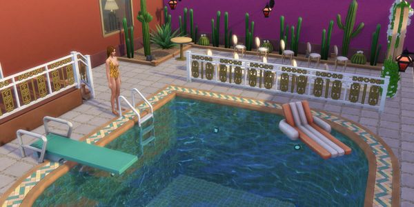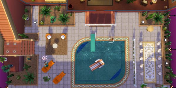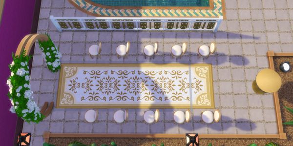 It is lovely that Pierre and Rosalina are getting married in Ciudad Enamorada ❤️I hope that the planing of their wedding goes well. The outdoors wedding patio that you have designed at their vacation rental home is lovely! The gold and white colors are elegant. The leafy shaped pool is very nice. It is great that Reggie and Reina came along on the wedding vacation too. Reggie likes being on the heart shaped bed! I feel very sorry for Rosalina turning blue and is looking like she may soon freeze to death! 😢 She is very clever though to be able to walk on water!