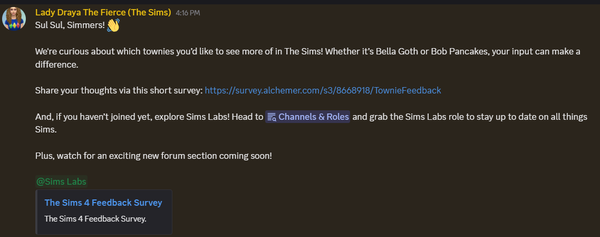 Some of you may recall I started the Sim Gurus On Twitter thread in 2018 and passed the torch to Duvelina in 2020. She has informed me that she hasn't been including tweets from the official The Sims Twitter (X) so I thought I'd start a thread for info from The Sims. Twitter (X), Facebook, and Instagram. Also info from EA when it relates to TS4.