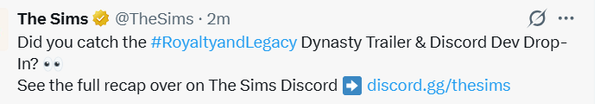 Some of you may recall I started the Sim Gurus On Twitter thread in 2018 and passed the torch to Duvelina in 2020. She has informed me that she hasn't been including tweets from the official The Sims Twitter (X) so I thought I'd start a thread for info from The Sims. Twitter (X), Facebook, and Instagram. Also info from EA when it relates to TS4.